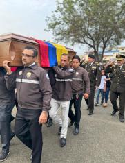 La Policía Nacional protagonizó una dolorosa y sentida despedida de los dos elementos de la Policía Judicial asesinados en Olmedo, Manabí.